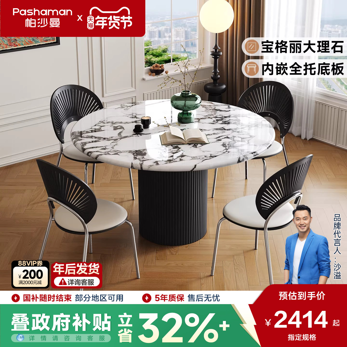 帕沙曼高端宝格丽餐桌轻奢高级感大理石圆桌子客厅家用小户型饭桌