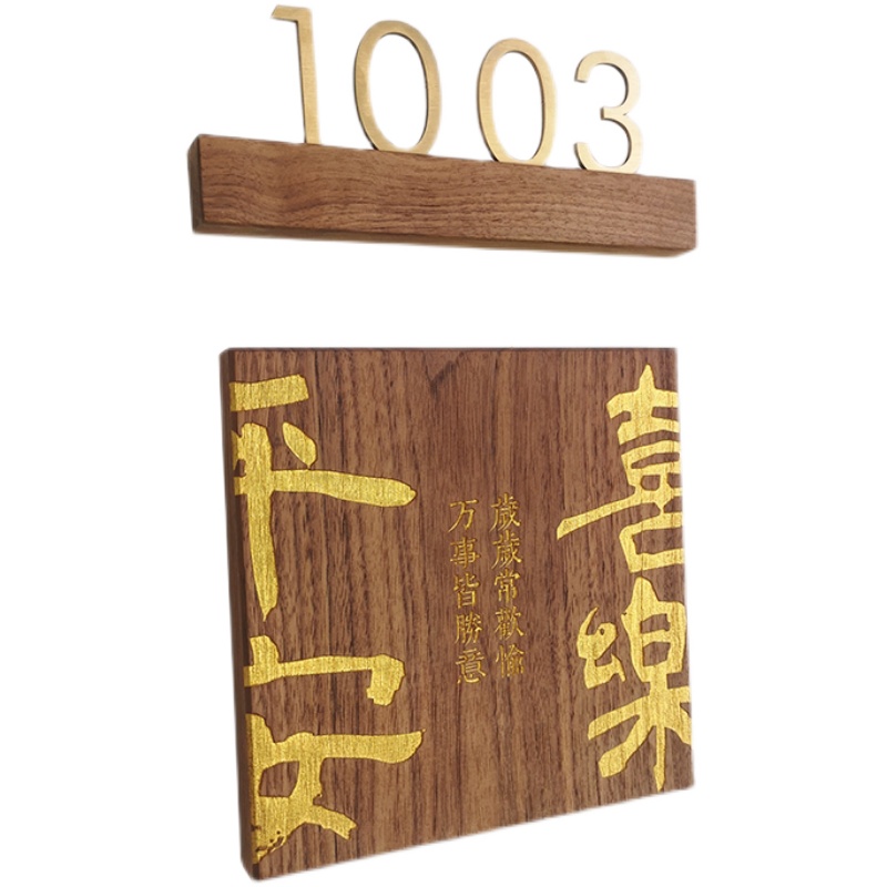 黑胡桃门牌实木牌雕刻民宿定制平安喜乐挂牌金属木板刻字个性定做