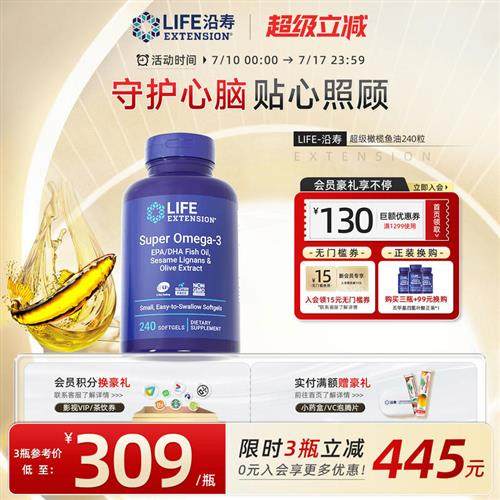 沿寿Life美国深海鱼油omega3欧米茄3鱼油软胶囊中老年dha橄榄多酚