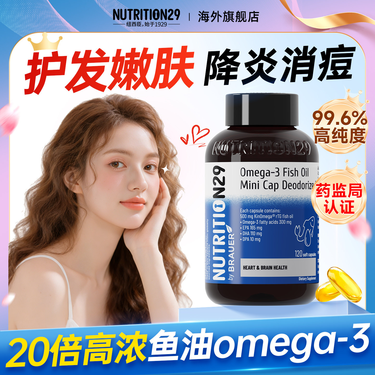 鱼油女生omega3成人女性高浓度祛痘女士护发抗养肤深海官方正品炎