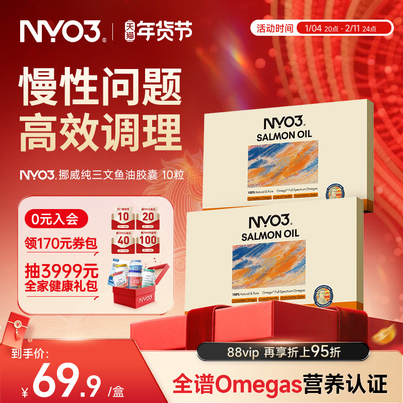 NYO3挪威进口97%高纯度三文鱼油成人心血管养护10粒omega3