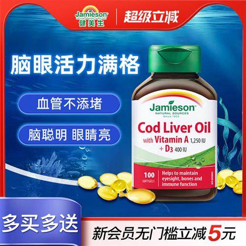 健美生进口深海鳕鱼鱼肝油软胶囊100粒维生素AD欧米茄3鱼油omega3