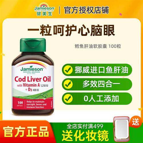 百亿健美生深海鳕鱼鱼肝油软胶囊100粒欧米茄3鱼油omega3维生素AD