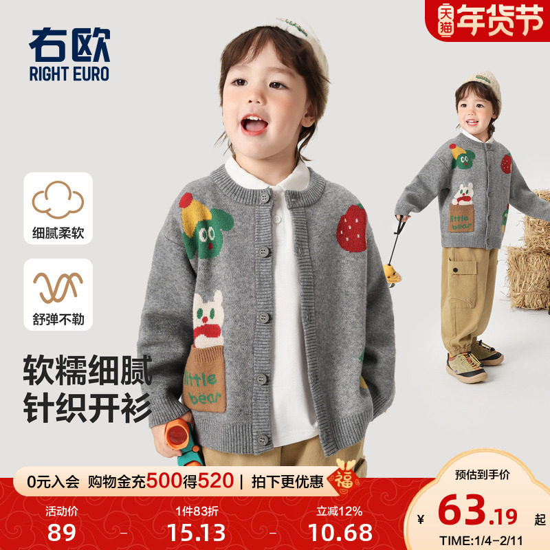右欧男童针织开衫卡通动漫女童儿童毛衣外套百搭春秋冬季新款童装