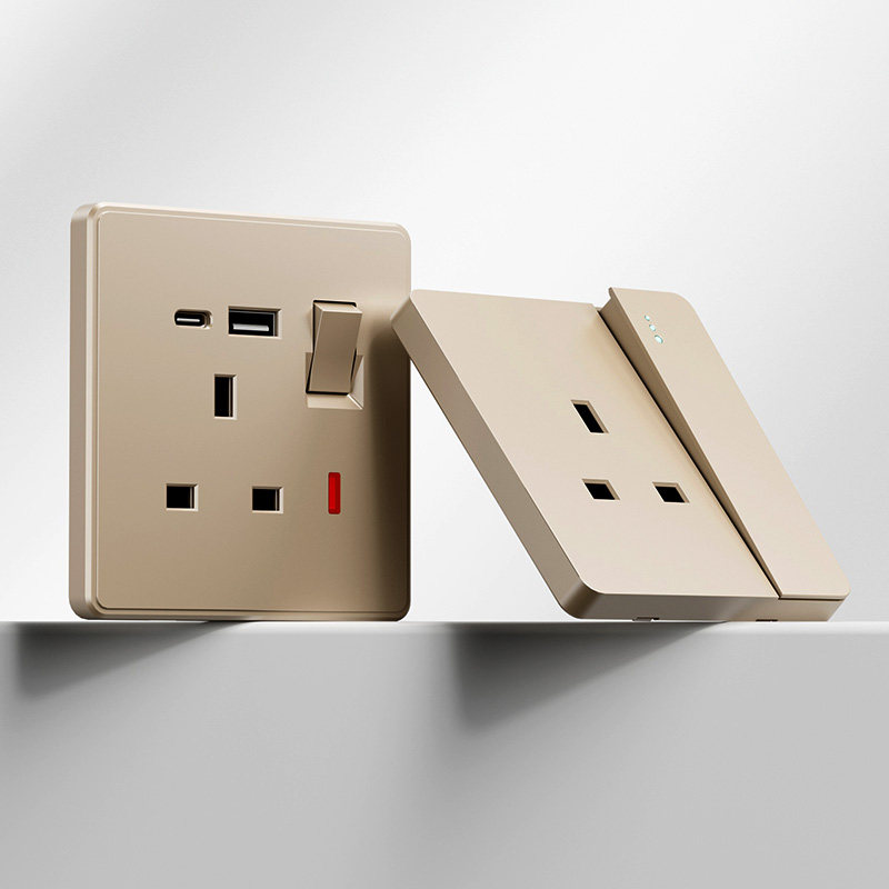 港澳版13a英式插座带USB充电灯制灯曲冷气开关面板香槟金家用