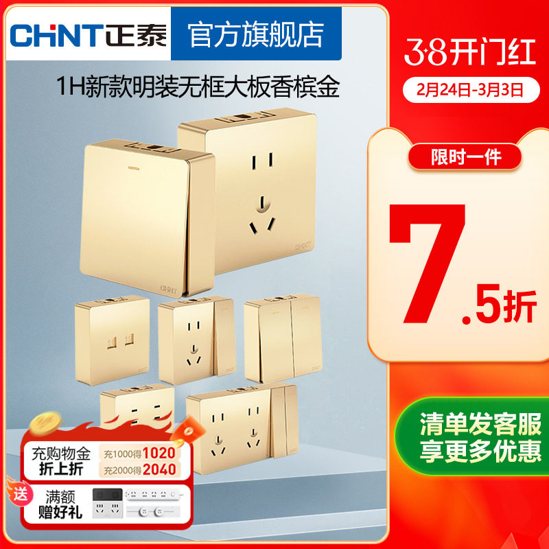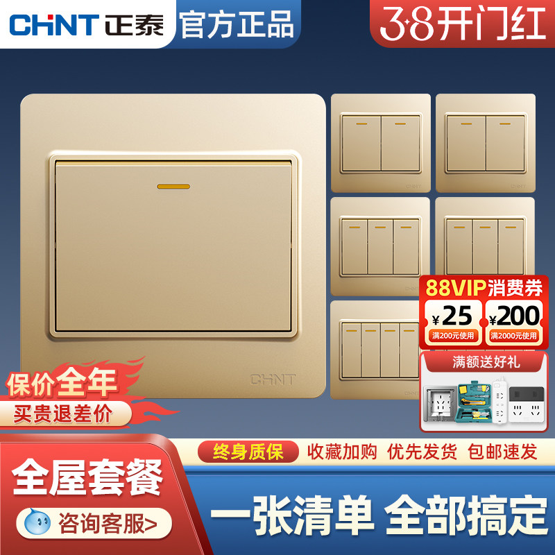 - 德力西香槟金开关插座