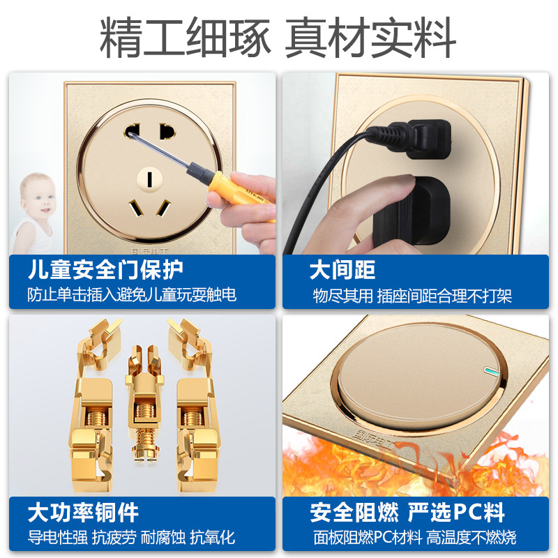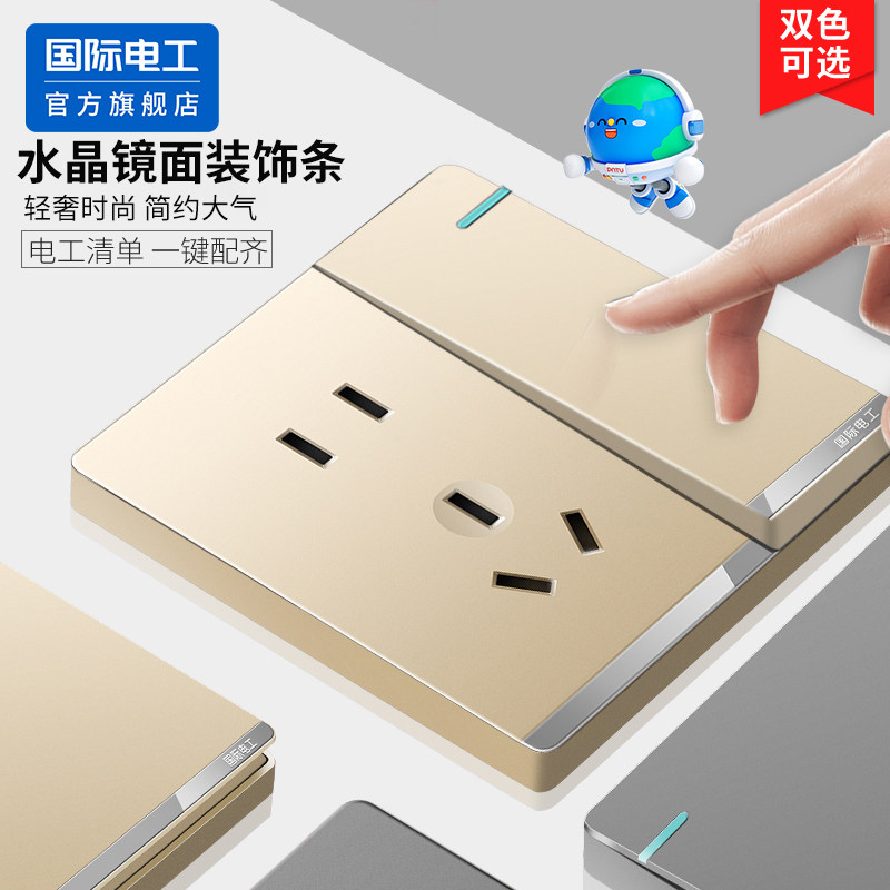 国际电工开关插座面板多孔16a空调墙壁一开五孔家用型拉丝香槟金