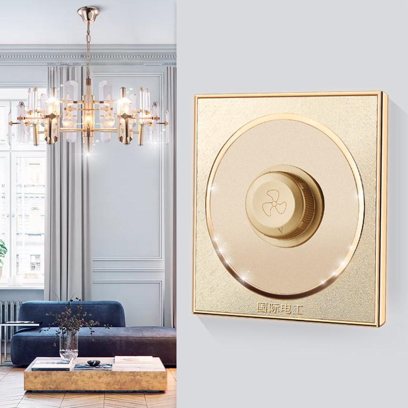 86型暗装吊扇调速器电风扇无极调速开关变速吊扇开关面板香槟金