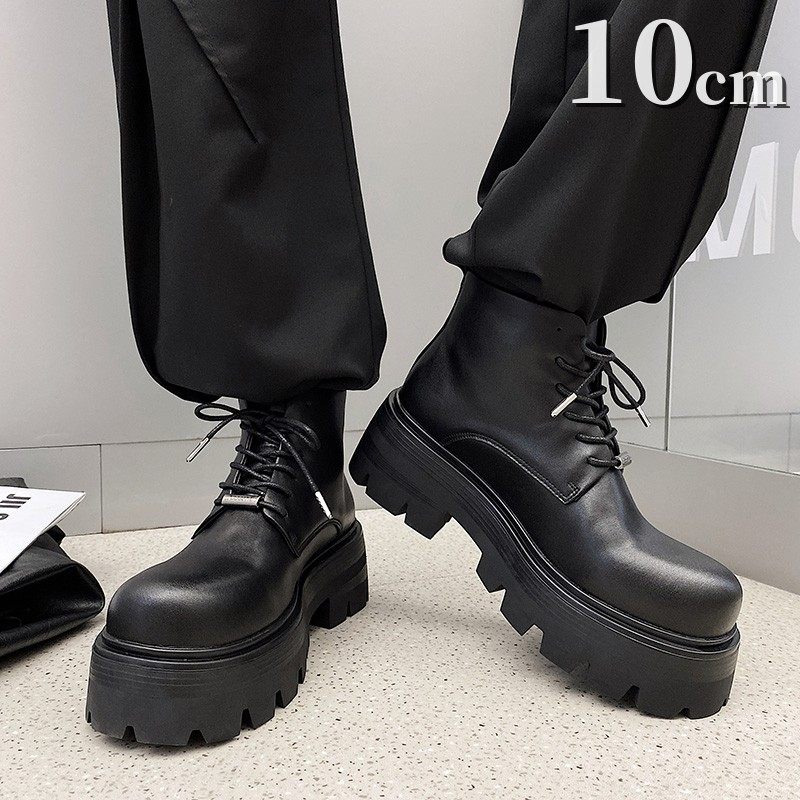 日系松糕马丁靴男厚底德比靴短筒时装大头高筒皮鞋内增高男靴10cm