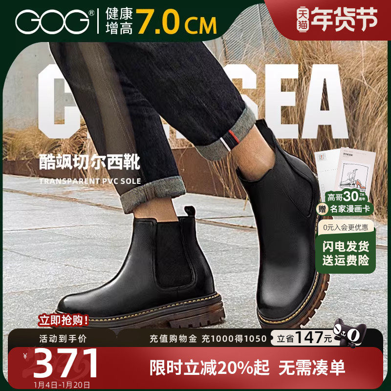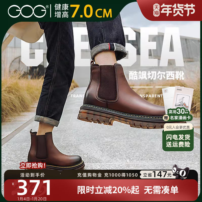 高哥户外切尔西靴内增高男靴真皮英伦风男士皮靴秋季男士短靴7cm