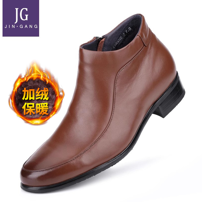 花花公子男靴冬季加绒真皮羊毛皮靴内增高商务休闲正装高帮棉皮鞋