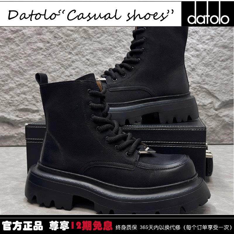 皮靴男真皮马丁靴秋季高帮工装靴潮流内增高中帮英伦风牛皮男靴子