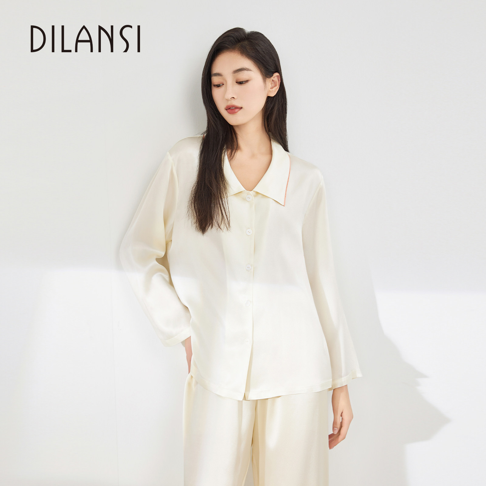 - 真丝长袖长裤女睡衣