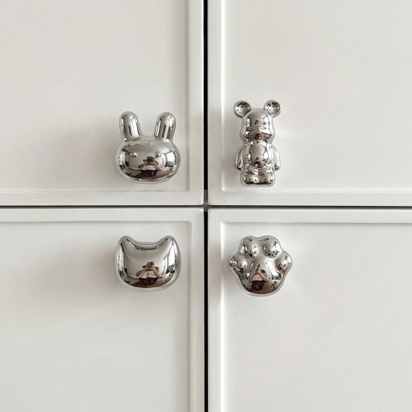 轻奢派银色卡通儿童衣柜拉手柜门抽屉把手陶瓷可爱高级感创意单孔