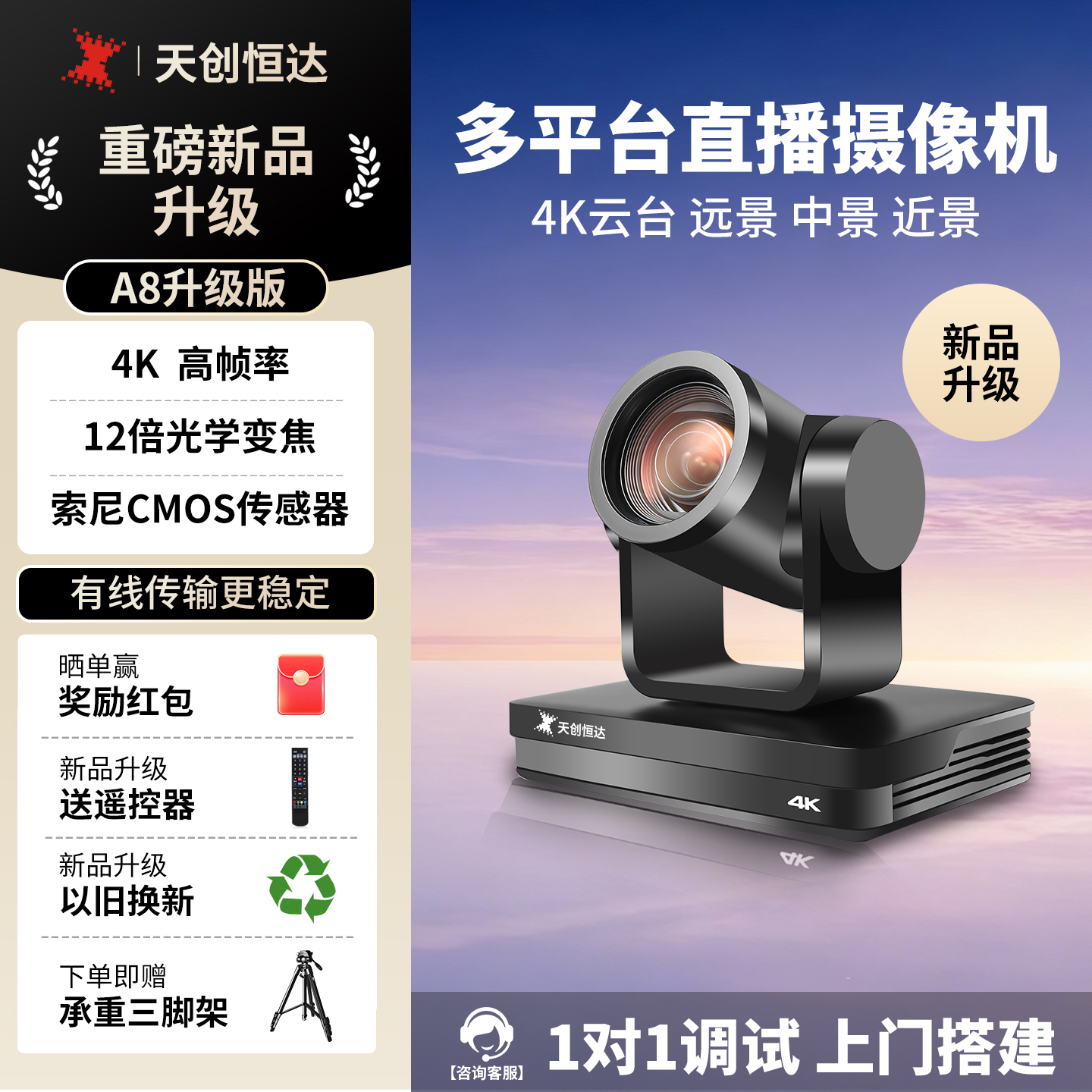 天创恒达4K直播摄像头A8升级版多平台远景中景近景12倍变焦