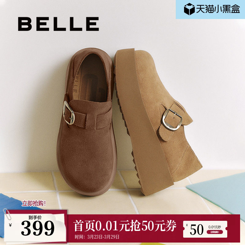 百丽女鞋子千层可颂厚底增高勃肯鞋女新款乐福休闲单鞋子E4S1DC