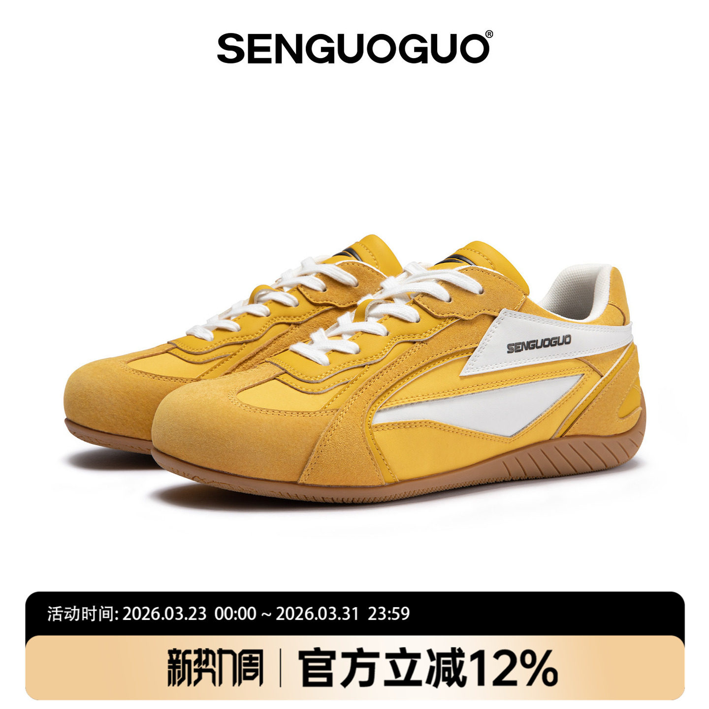森果果 赛车鞋/黄色德训鞋女2026春季新款休闲板鞋增高情侣鞋子男