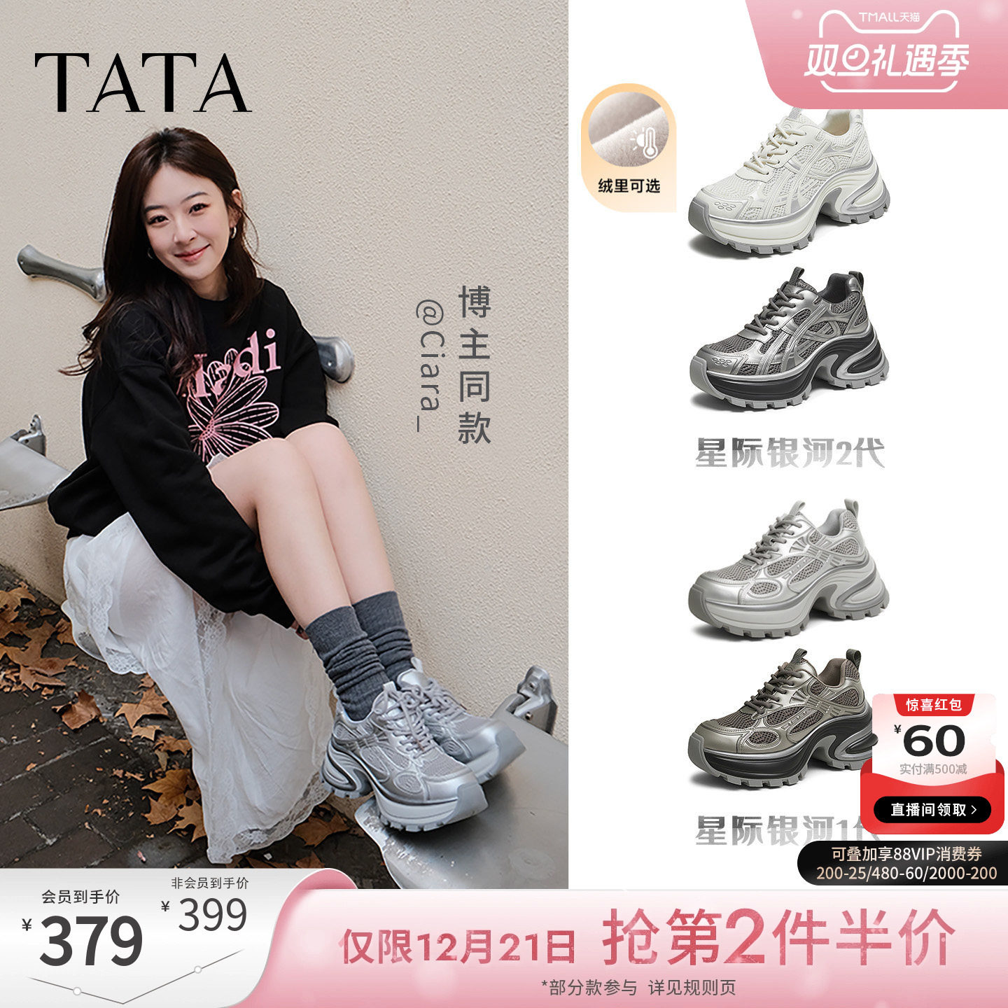 TATA他她星际银河加绒老爹鞋女休闲鞋增高厚底运动鞋2025百搭鞋子