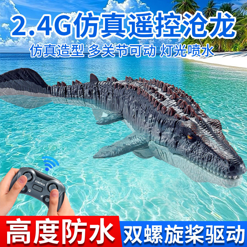 遥控沧龙恐龙电动可下水大号模型仿真苍龙会摇摆游泳喷水儿童玩具