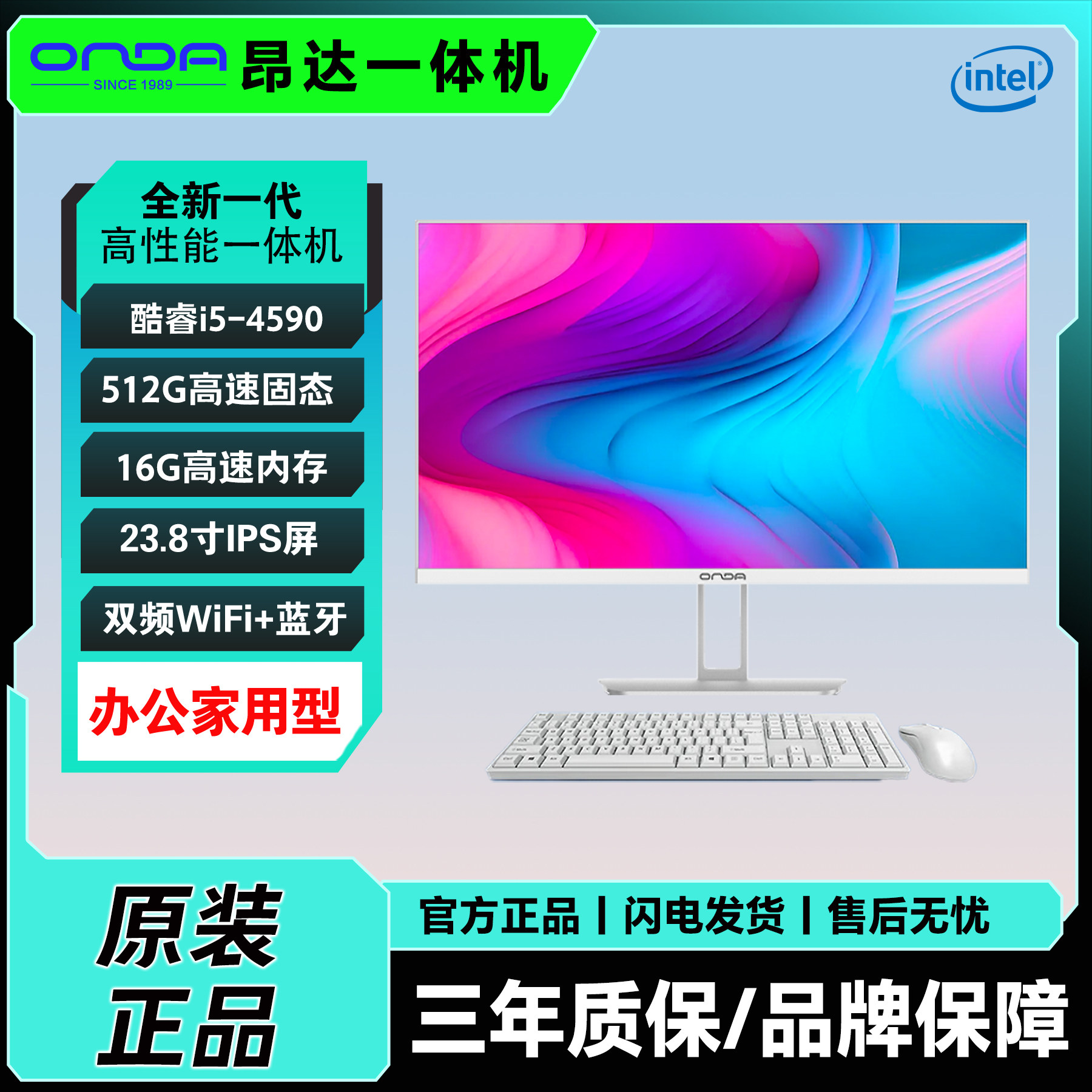 昂达ONDA24寸电脑一体机 i5-4590 16G 512G WiFi商务办公家用整机