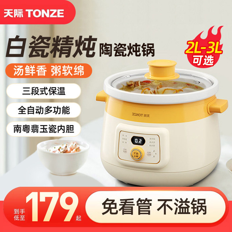 天际电炖炖锅陶瓷煮粥宝宝煲熬汤神器家用3人4养生电砂锅全自动2L