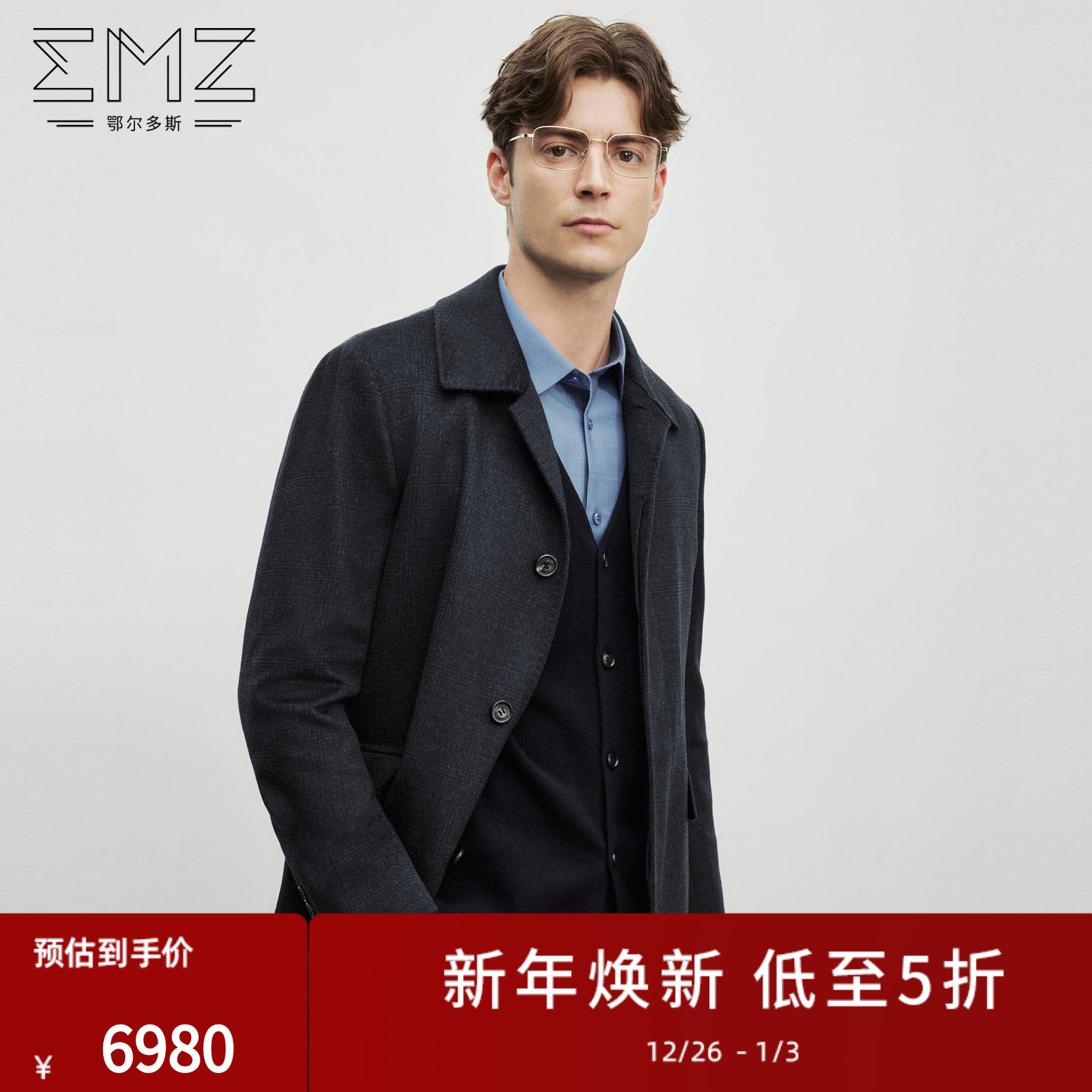 【羊绒羊毛】EMZ鄂尔多斯冬季新款可脱卸内胆高端毛呢大衣外套男