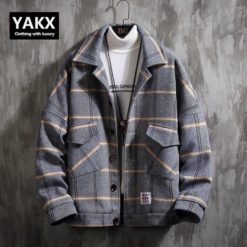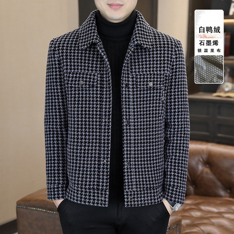 高端毛呢大衣男2025秋冬季新款潮流修身千鸟格呢子外套男士夹克帅