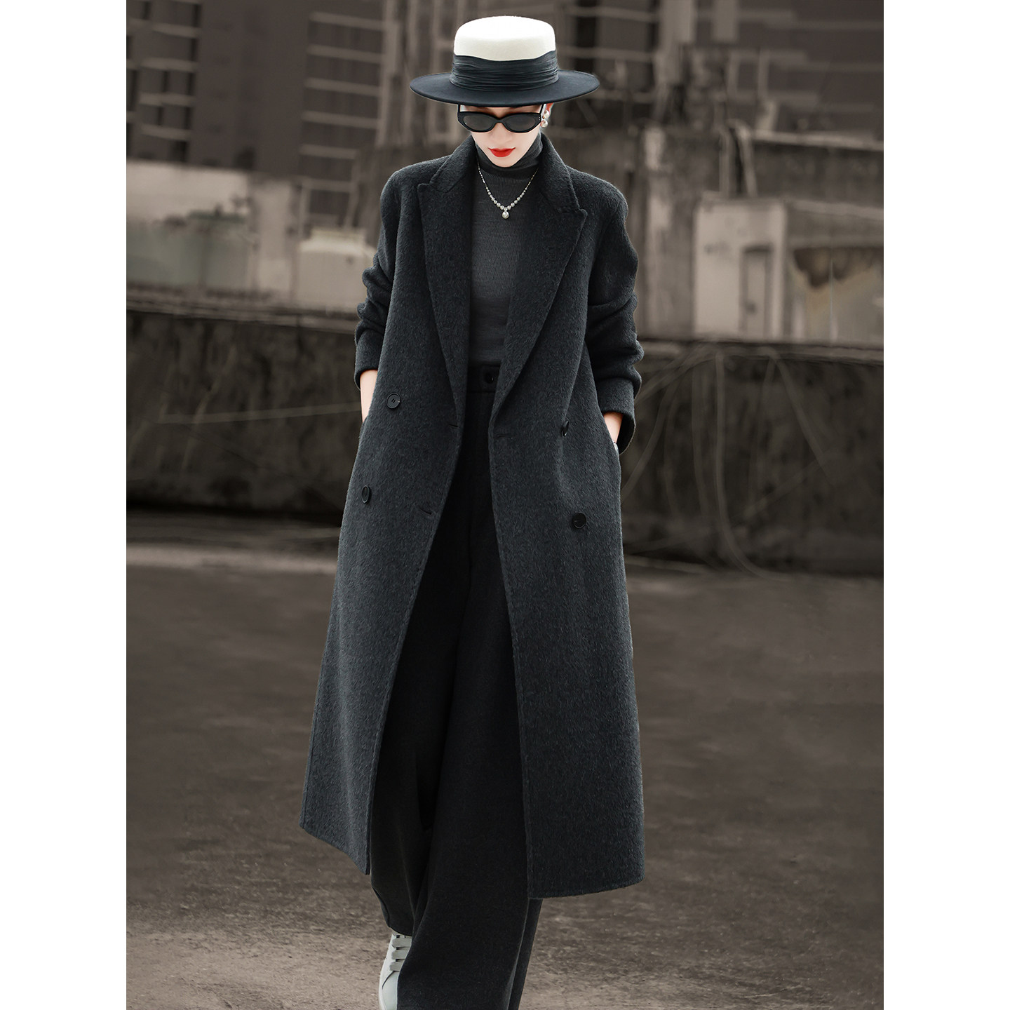 【专柜正版】高端双面羊毛羊绒毛呢大衣双排扣毛呢外套时尚洋xz8