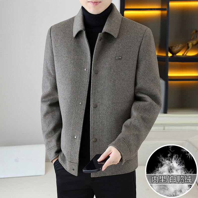 高端毛呢大衣男短款秋冬季翻领羊绒呢子外套男装加厚款纯色夹克衫