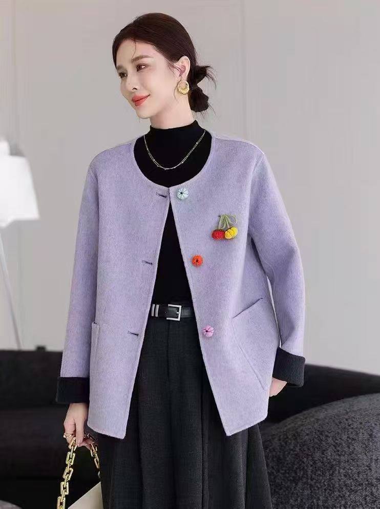 【限时立减】新中式国风上衣刺绣双面羊绒大衣女短款高端毛呢大衣