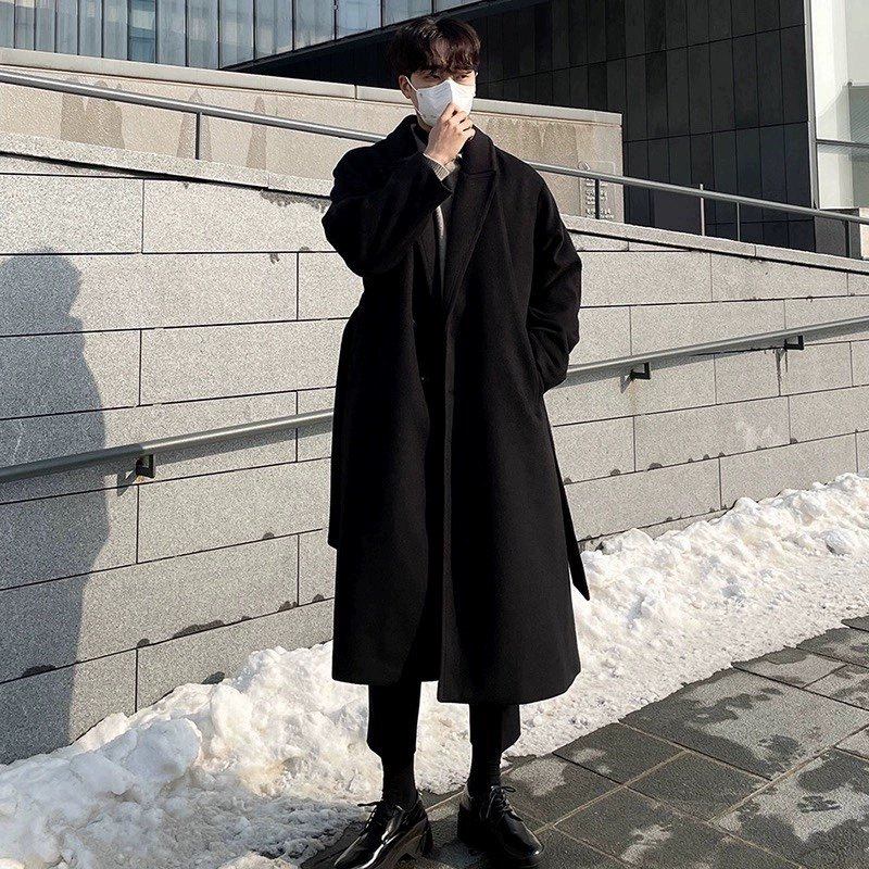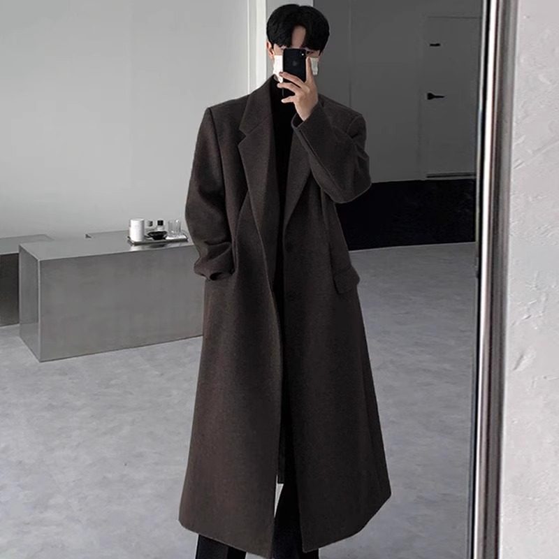 高端毛呢大衣男士中长款过膝韩版宽松帅气风衣冬季加厚非羊绒外套
