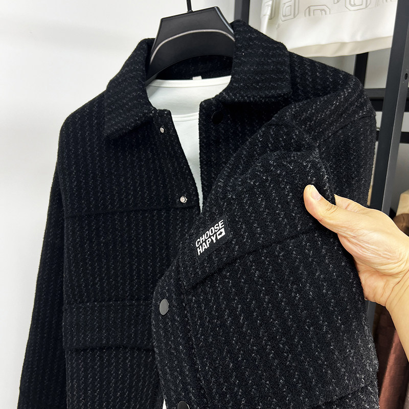 高端毛呢大衣男士秋冬季2025新款宽松韩版短款呢子外套男款加绒厚