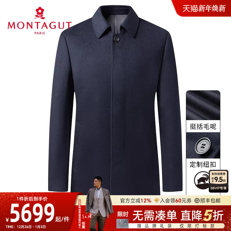 [100%山羊绒]梦特娇秋冬男士高端毛呢大衣奢华品质翻领外套防风J
