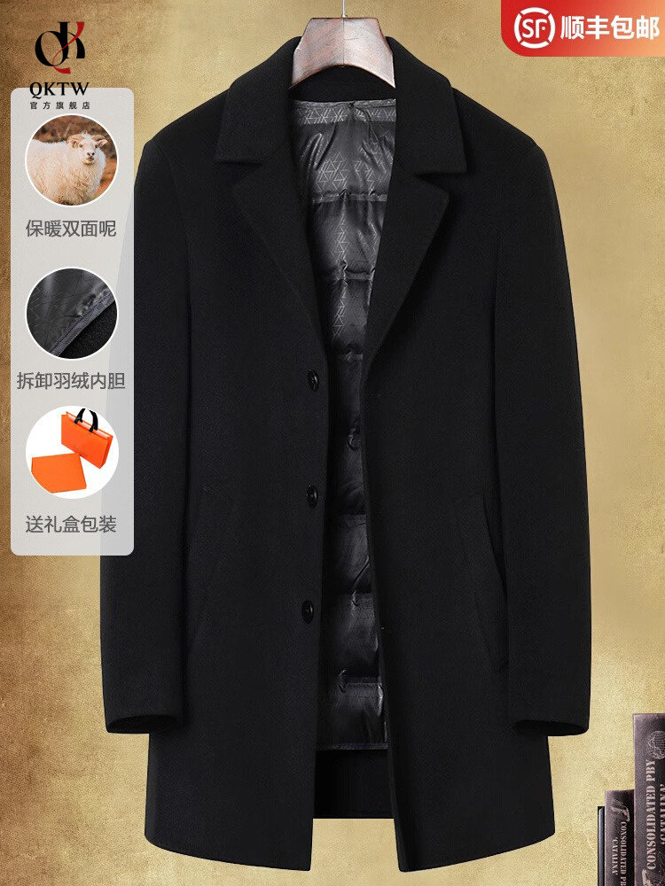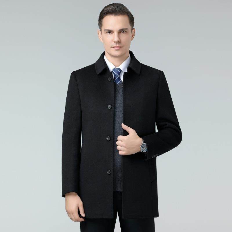 高端毛呢大衣男士秋冬装中年爸爸商务休闲双羊绒长中款面388082外