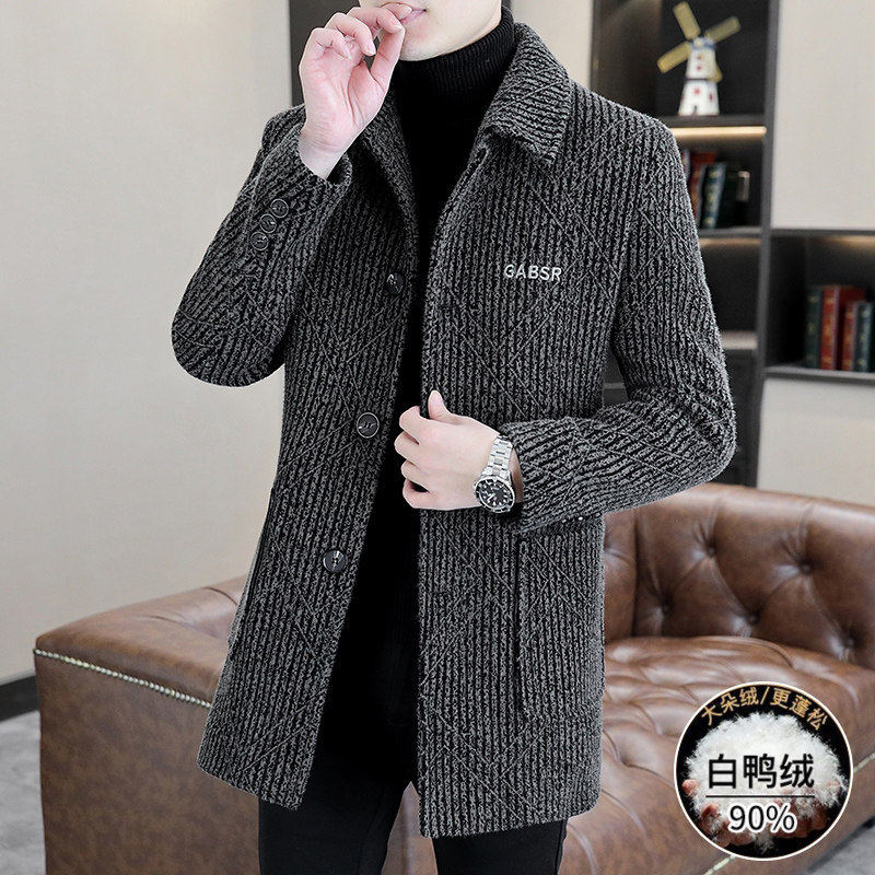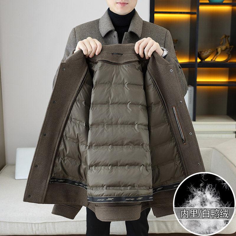 高端毛呢大衣男中长款翻领潮流休闲修身羽绒内胆加厚保暖风衣外套