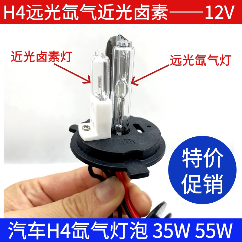 HID汽车氙气大灯远近一体H4-2远氙近卤灯泡 H4带卤疝气灯35W 55W