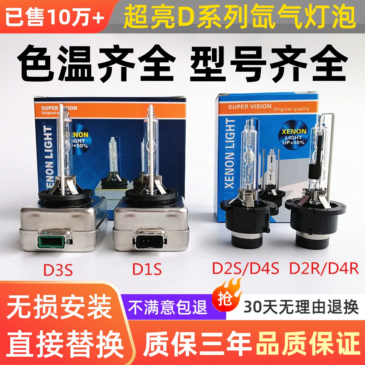 汽车氙气大灯泡D1SD2SD3S D4S D2R D4R远光近光35W超亮白光前大灯