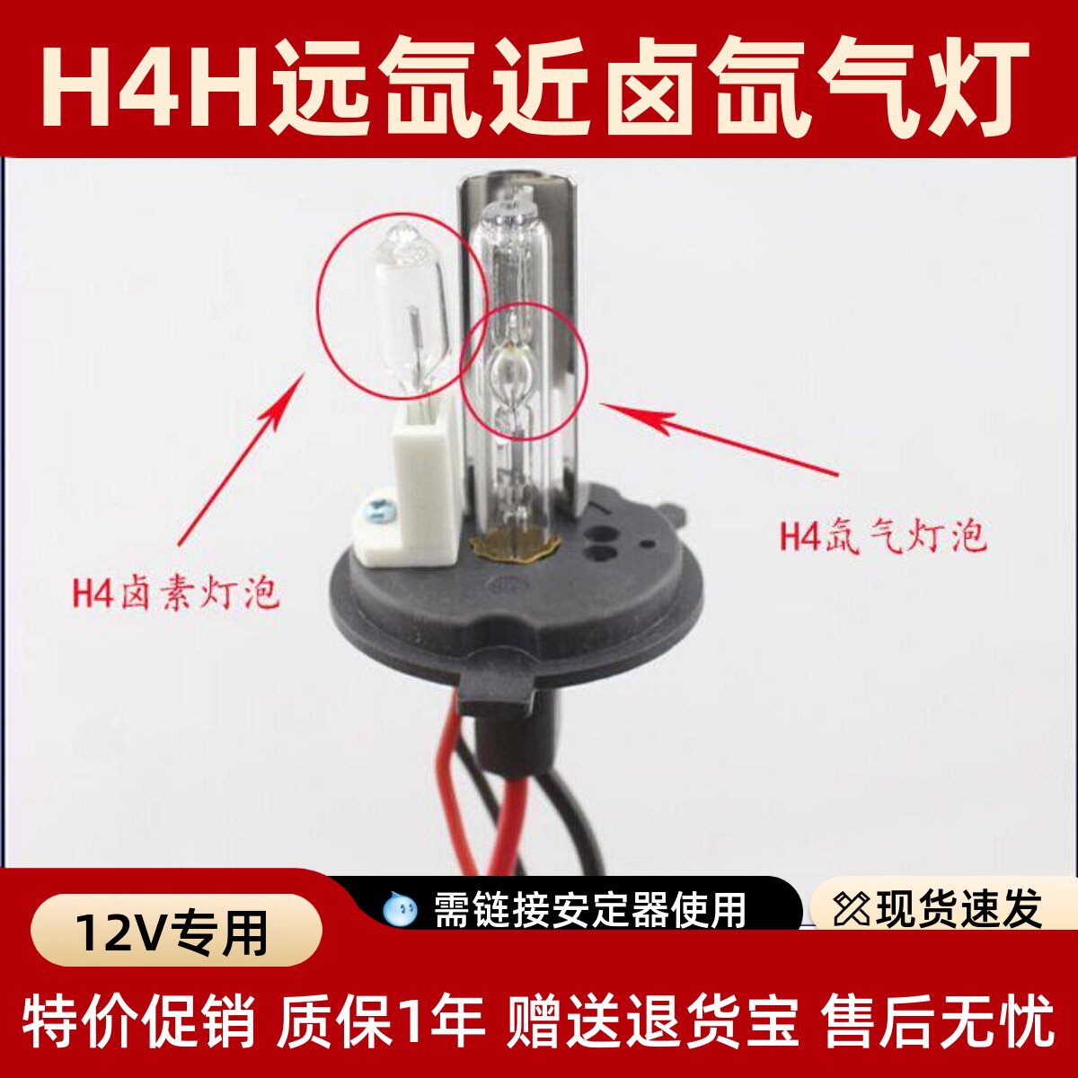汽车HID改装远近一体氙气大灯H4-2远氙近卤 H4带卤素灯疝气灯泡
