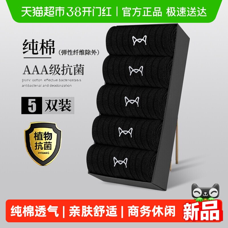 猫人男袜子纯棉中筒袜吸汗透气防臭抗菌2026新款男士黑色商务袜子