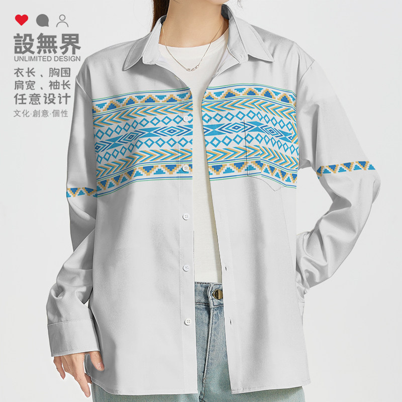 中国民族风维吾尔族少数民族图腾大码长袖衬衫男装女装潮设 无界