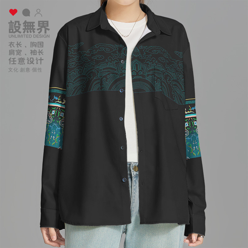 中国民族风满族少数民族图腾图案大码长袖衬衫男装女装潮设 无界