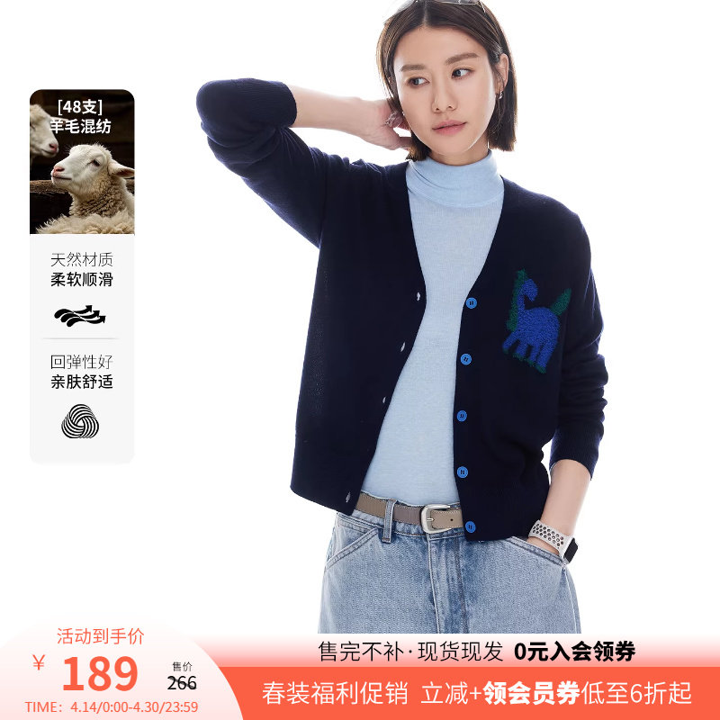 云上生活【青骊】趣味小马绣花羊毛混纺正肩V领外套2026春上衣女