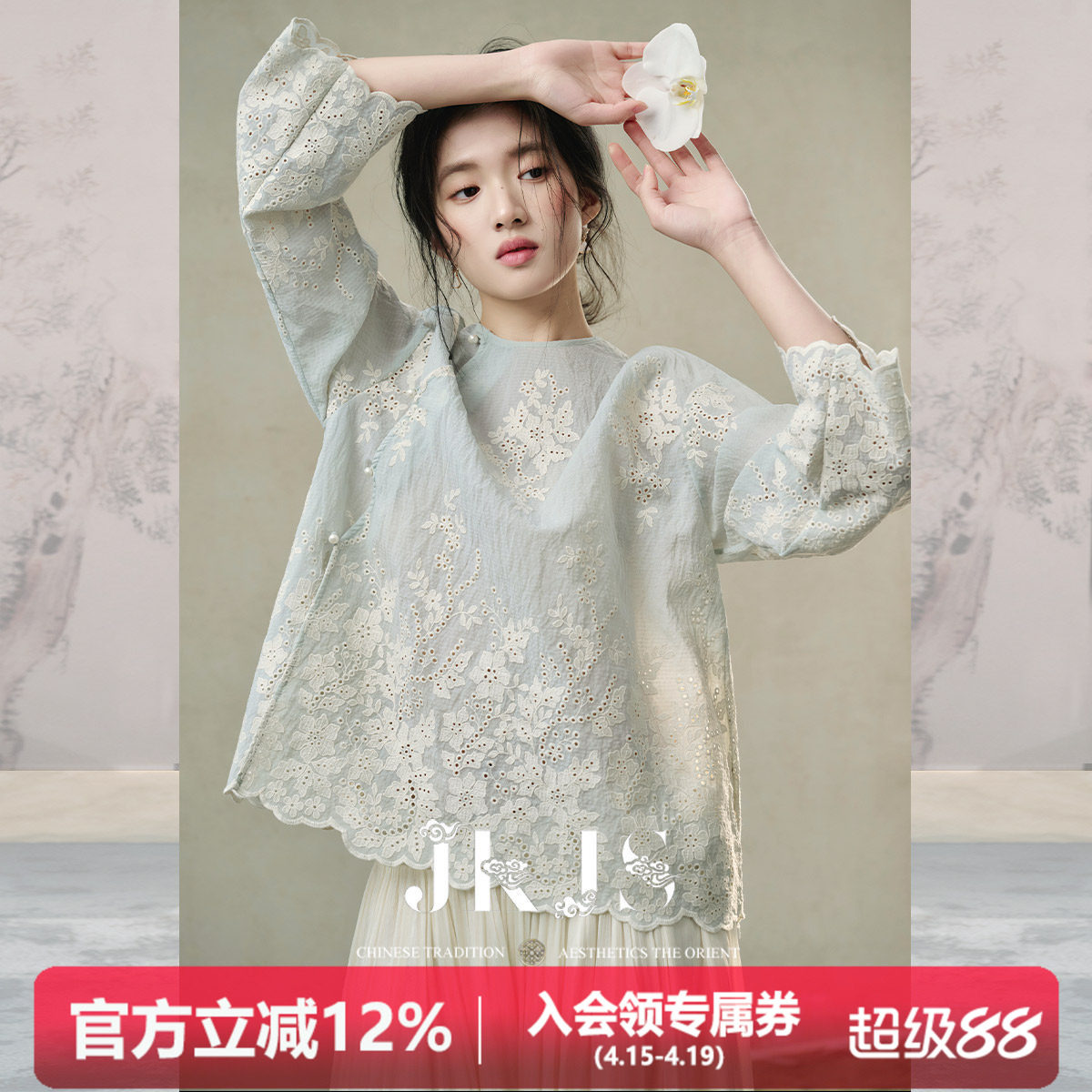 JKJS【鸾金缕】蕾丝珠片绣花衬衫新中式上衣小众设计感外套女款夏