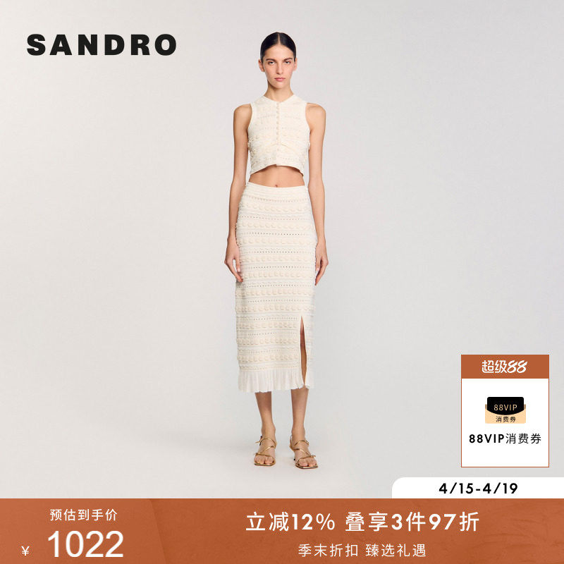 SANDRO博主同款2025春夏女装法式气质时尚立体绣花镂空针织开衫