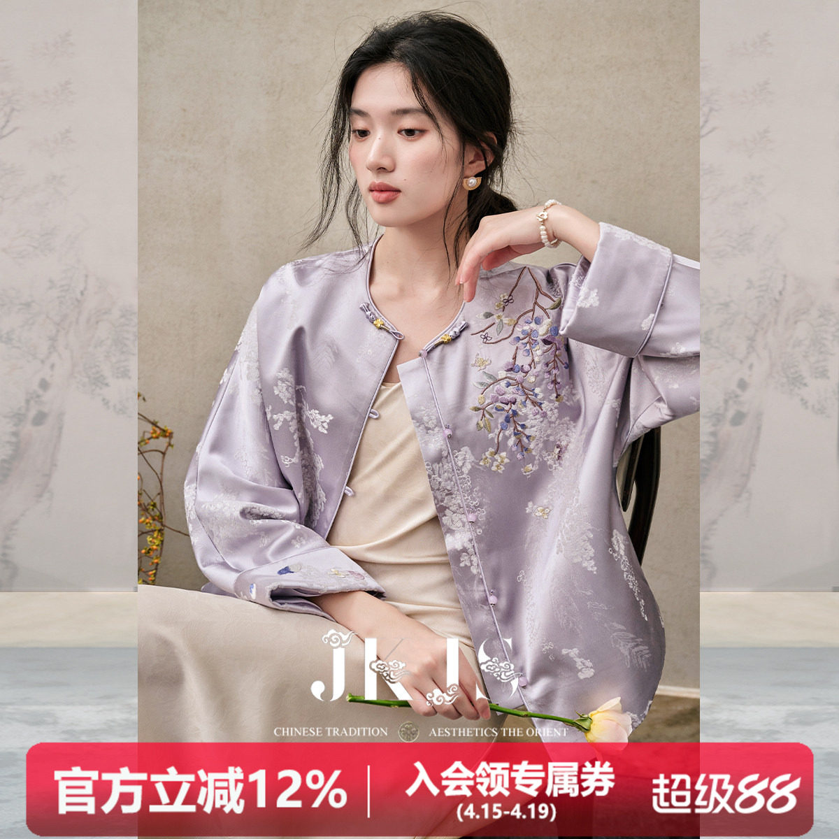 JKJS【静芜月】人丝交织提花重工绣花外套女2026新款秋新中式上衣