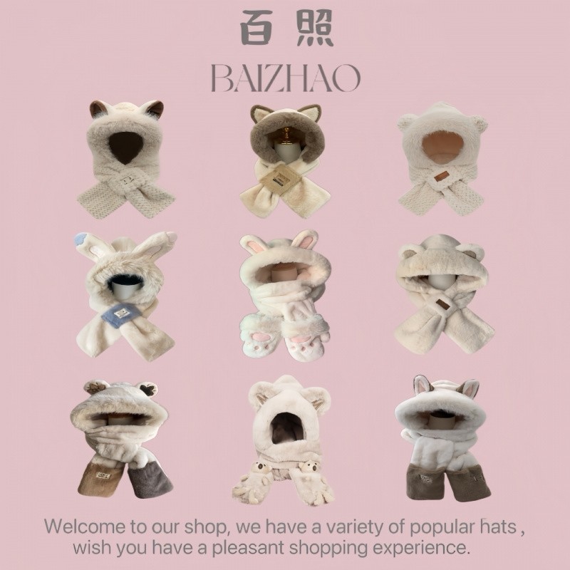 帽子女款2025新款帽子围巾一体防风帽毛绒保暖可爱加厚护耳秋冬季