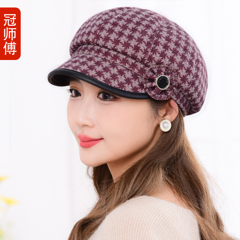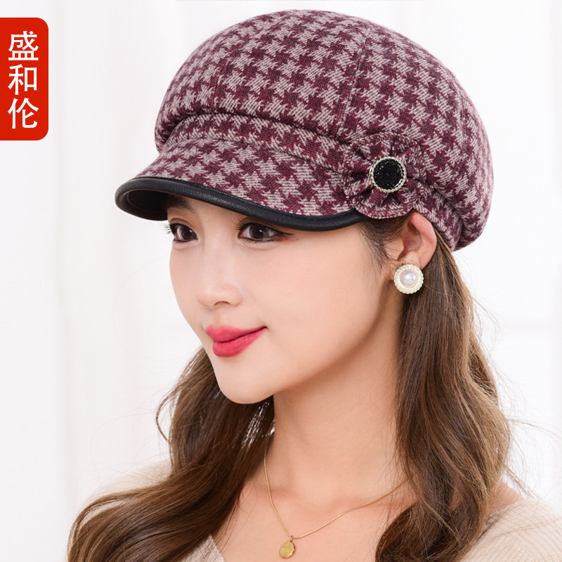 女士秋冬季保暖鸭舌帽贝雷帽毛线帽女款帽子新款加厚女帽妈妈洋气