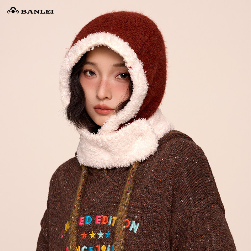 2025冬季新款帽子围脖女加绒防风保暖加厚连帽头套东北户外骑行帽
