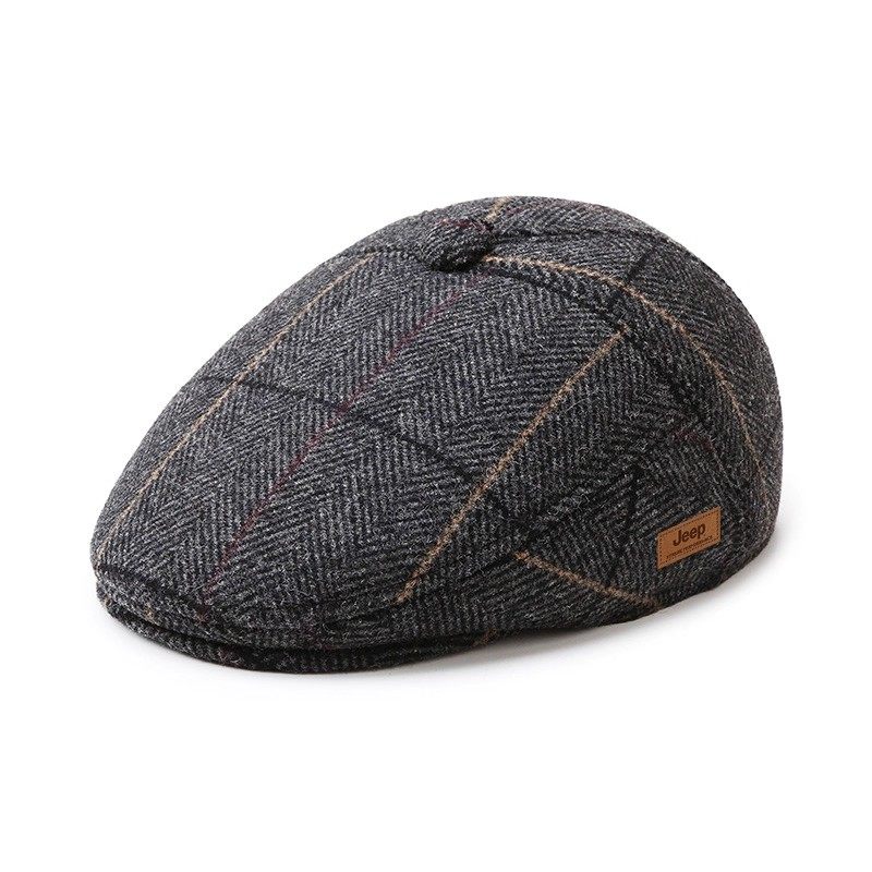 jeep吉普帽子男士冬季2025新款加厚羊毛呢棒球帽中老年保暖鸭舌帽