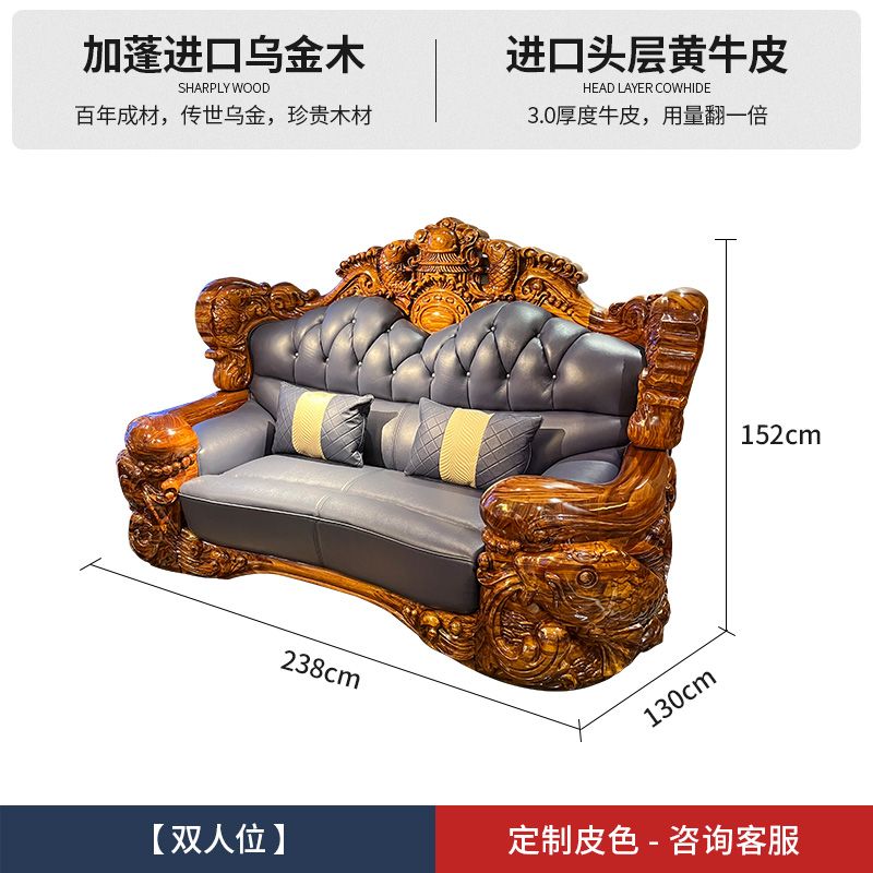 乌金木头层牛皮沙发组合奢华欧式实木别墅美式客厅大户型真皮沙发